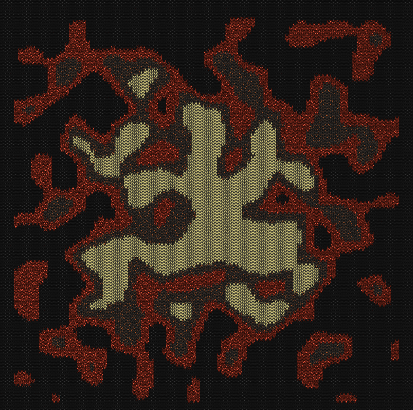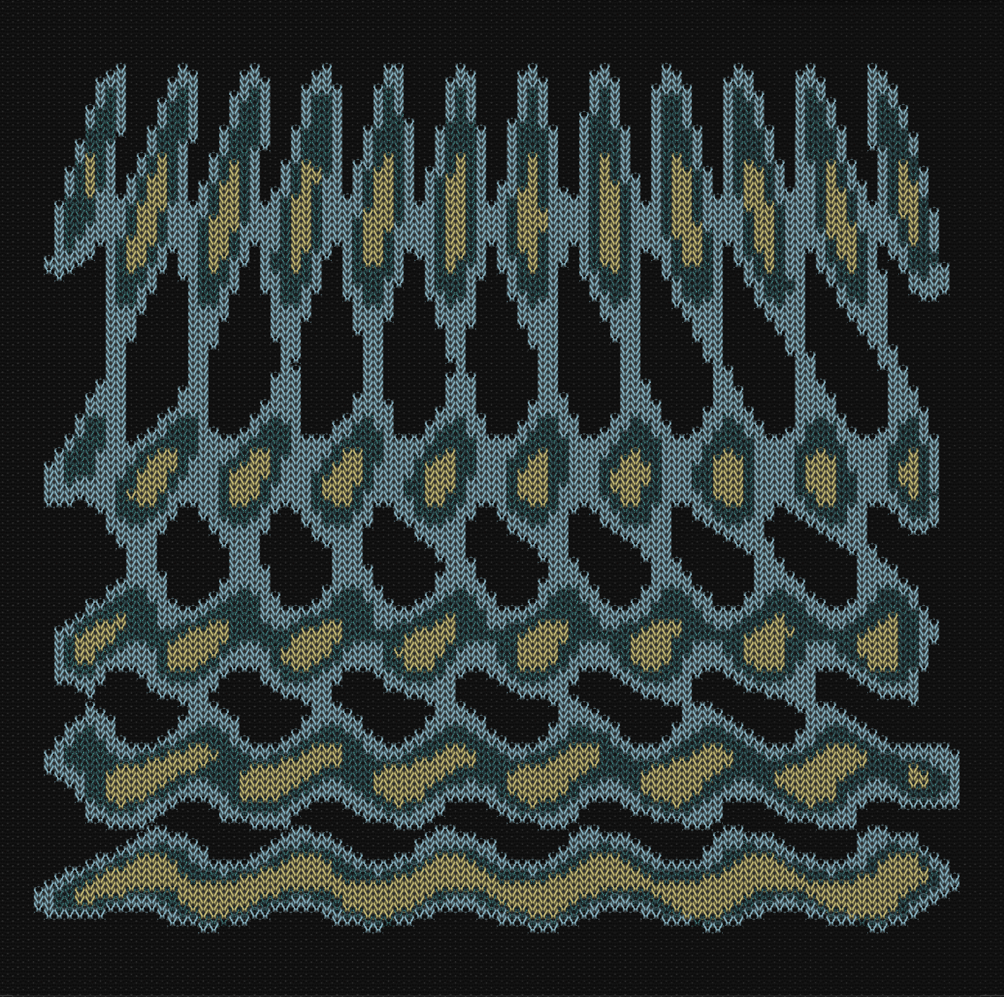 In this case, we chose Python and created a sort of generative adversarial system: the designer proposes idealized structures, and the machine pushes back with manufacturing reality. On the generative side, the Structure Platform is aware of many spatial parameterizations, including the fields shown above, 3D position, and signed geodesic distance to open and closed curves. A computational designer can then program patterns using any of these input drivers, with helpers to make it easy to handle patterns across parametric discontinuities and to place goring singularities where they are least disruptive. It works like a fragment shader on the cloud: Each knit cell can be single or double jersey while alternating between several yarns, also adding holes like pointelle, inner channels via tubular knitting, and surface bumps via ottoman.
