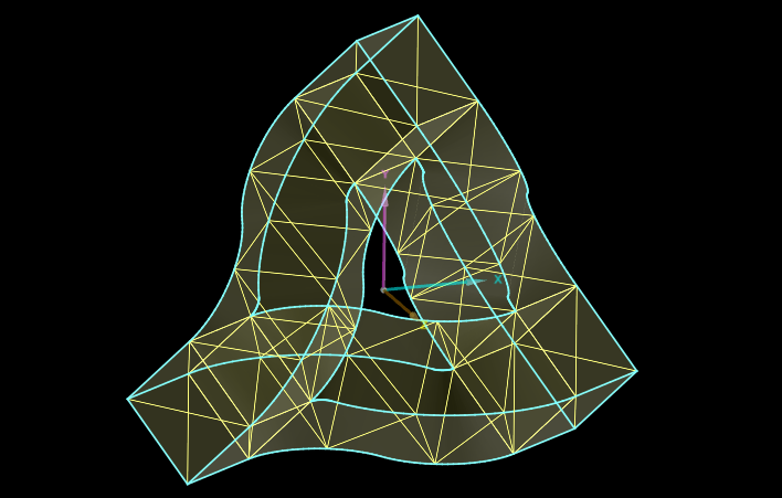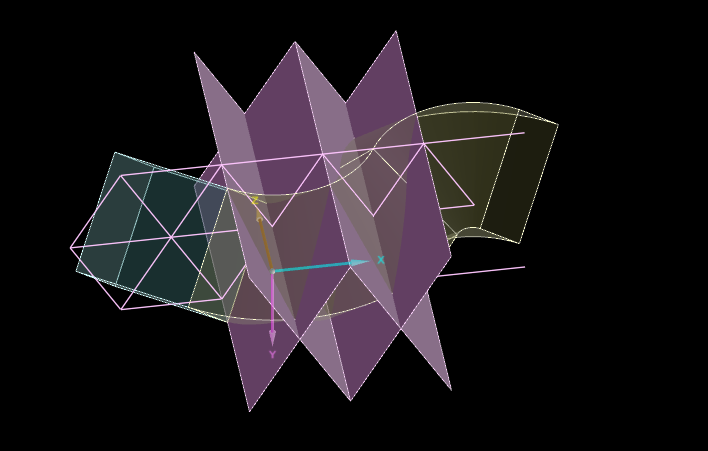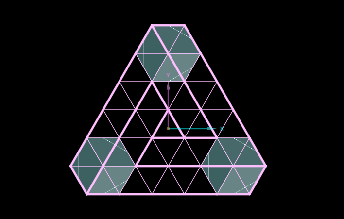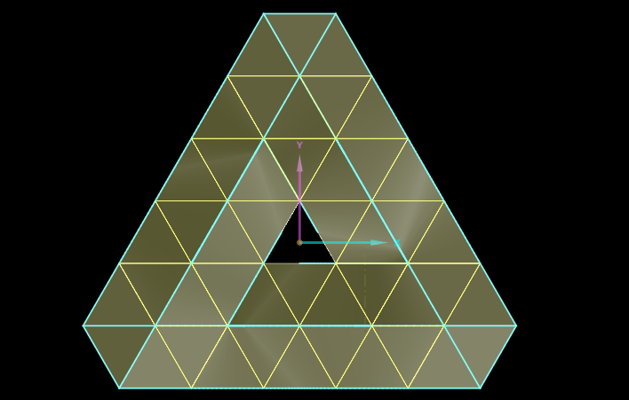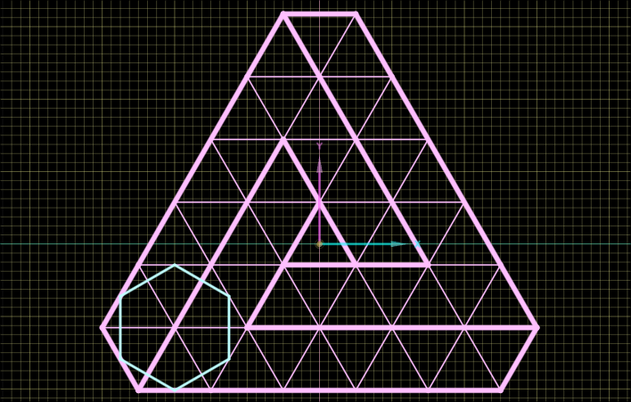 We should be sufficiently pleased that we have constructed the triangle out of cones, but now we need to turn it into a truss structure. Let's extrude our 2D beam pattern to see where it intersects the arms.