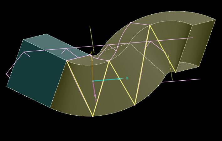 Lofting between these curves provides the arm surfaces. Note that each face is defined by concentric, offset arcs, so they are all cones and are therefore are developable (able to rolled from flat patterns).