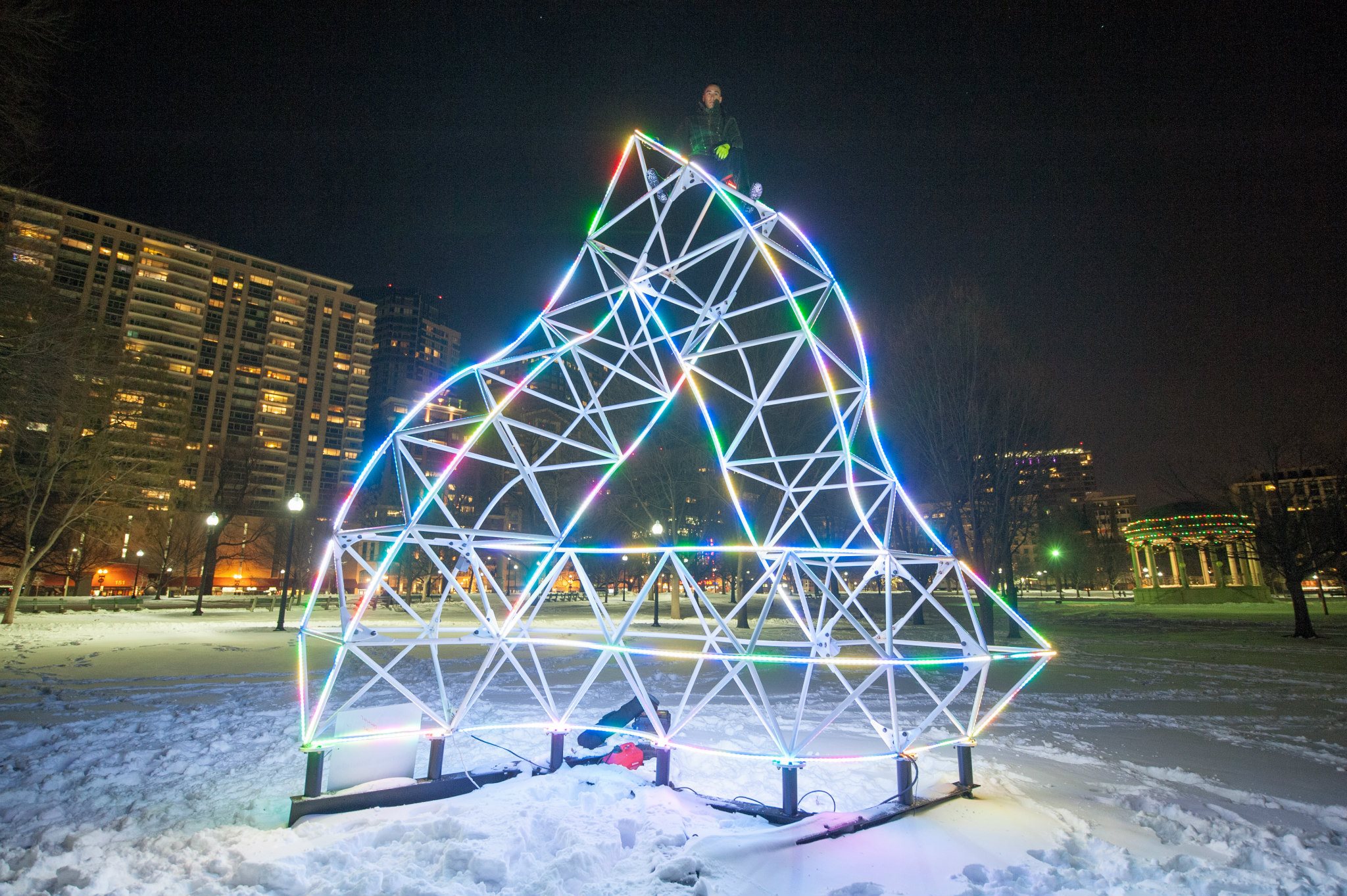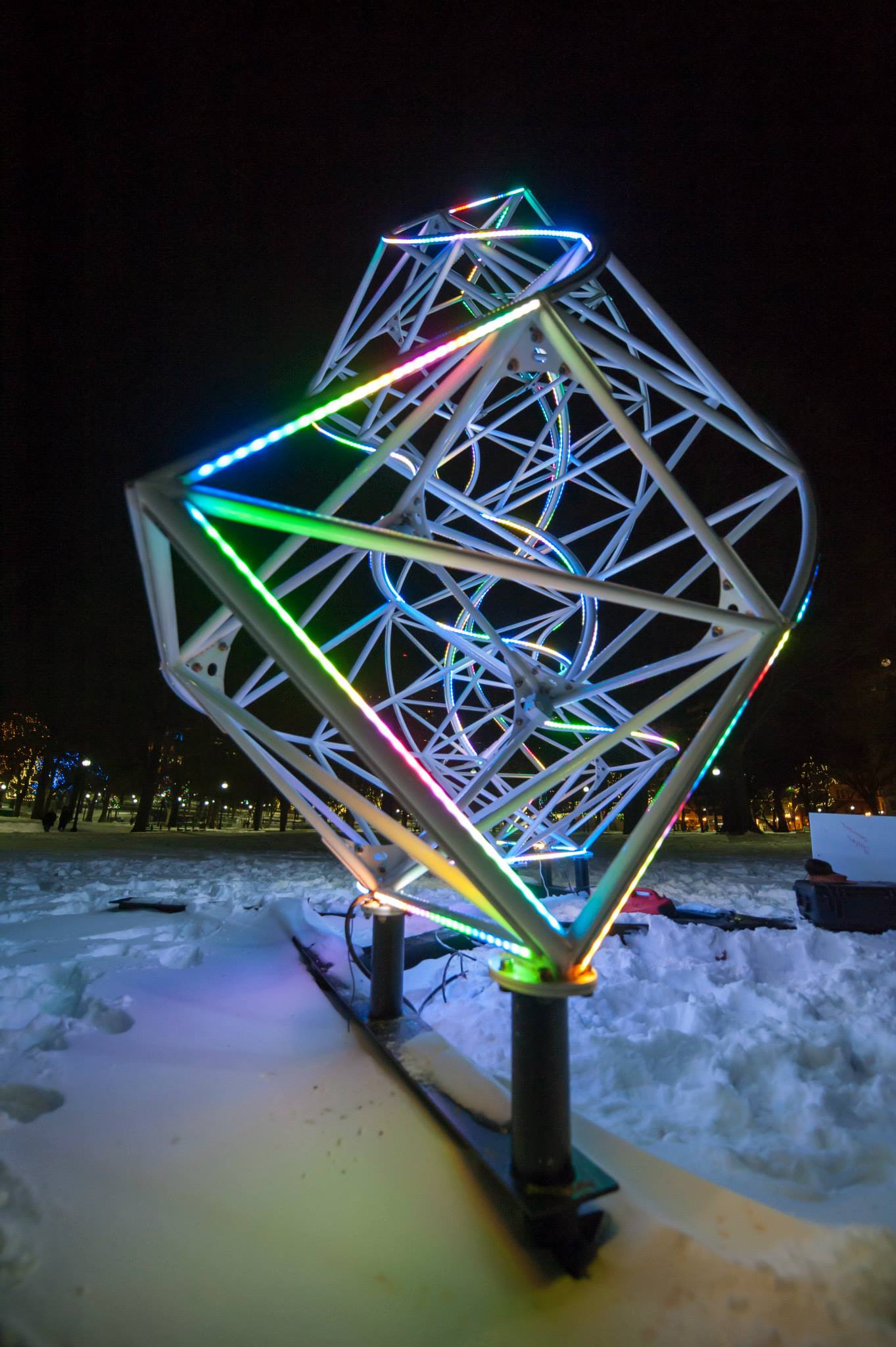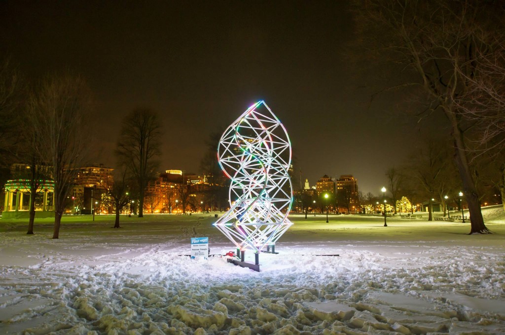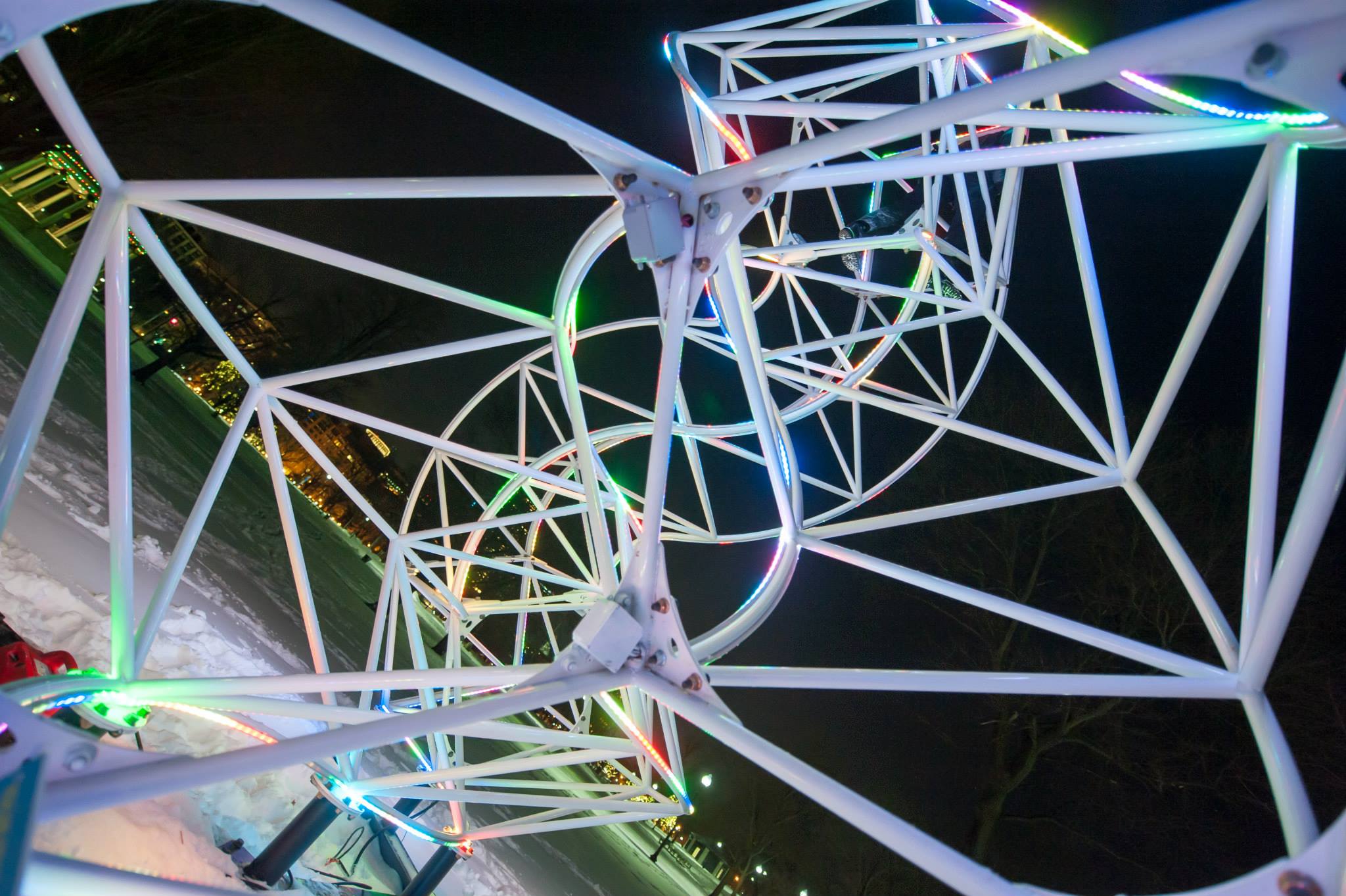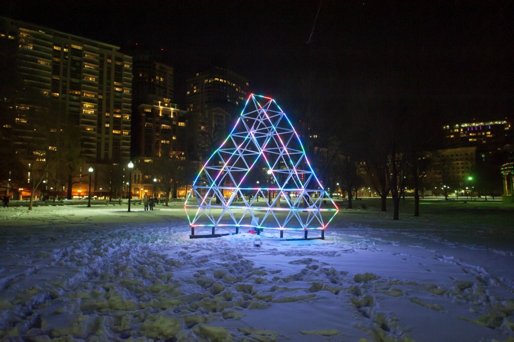It amazes me how different people see the triangle and capture it as a still. Due to a snowstorm, we couldn't take it down right away. Blake lit it up briefly so John Dill could explore its symmetry: