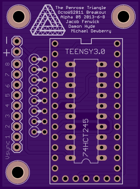 PCBs June 09, 2013 Just in on GrabCAD: The PCB layout designed by Dewb, Damon, and Jacob: Each PCB approximately 1" x 1.5". The test boards should arrive within a week. We will test these and make final revisions. « First plasma cut flanges The Base of Operations (aka Surly's Shop) »