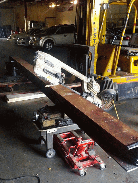 Surly does things with a forklift you wouldn't imagine. It's kind of like his hydraulic left hand. Once again, Google automatically made made a little ditty of the procedure for attaching a horizontal band saw to one of these with the forklift.